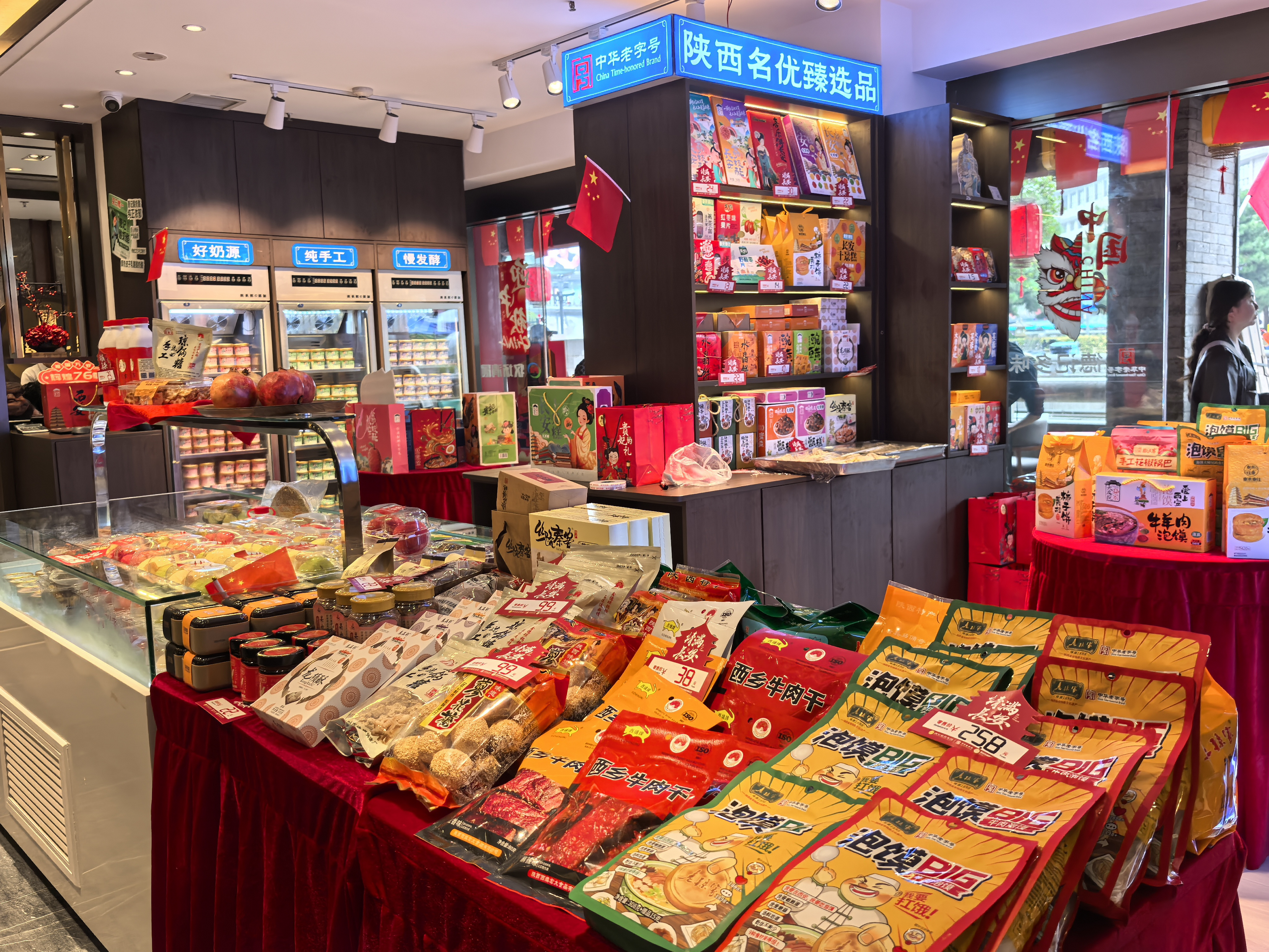 佳節佳禮。2025年西安飲食“尚食餅局·月禮”系列月餅,融合秦、蘇、廣、臺地域特色,減油減糖更健康,20余款中秋禮盒延續“國潮風”設計,覆蓋全省上百家商超,銷售火爆供不應求;“團圓中秋”“秦時映月”等電商禮盒累計銷售超3萬單,好評率逾98%。同時,各門店設置老字號伴手禮專區,精選西飲特色小吃、陜西名優特產、趣味文創商品等,廣受各地游客喜愛。