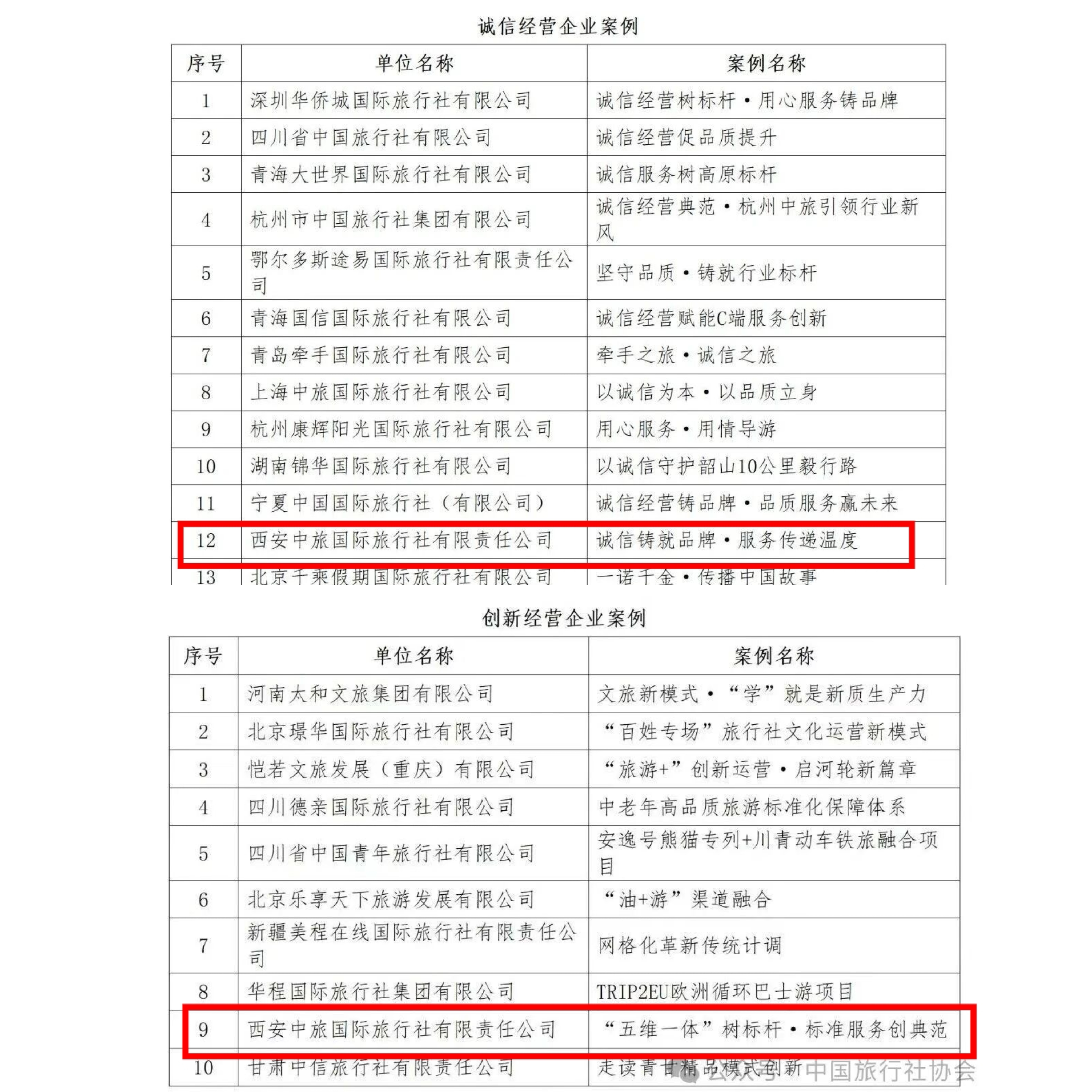 近日,“第八屆中國旅行社協(xié)會旅行服務案例榜單”正式揭榜,西旅股份旗下西安中旅創(chuàng)建的「誠信鑄就品牌·服務傳遞溫度」和「“五維一體”樹標桿·標準化服務體系」兩個案例,分別斬獲“誠信經(jīng)營企業(yè)案例”和“創(chuàng)新經(jīng)營企業(yè)案例”榮譽,彰顯了西安中旅在“誠信經(jīng)營”和“標準化服務”方面的優(yōu)勢和廣闊前景!
