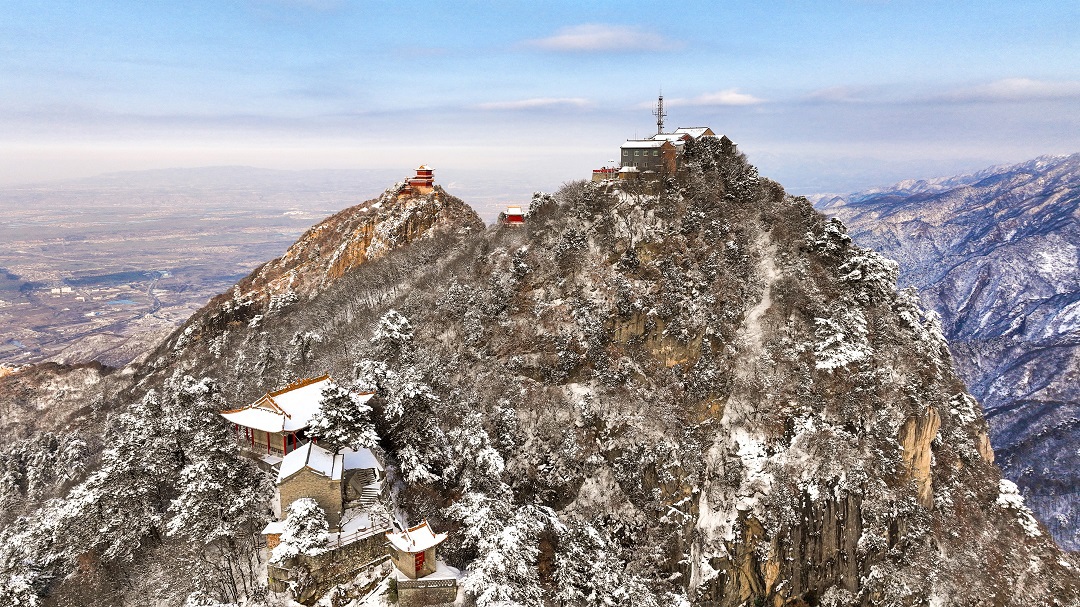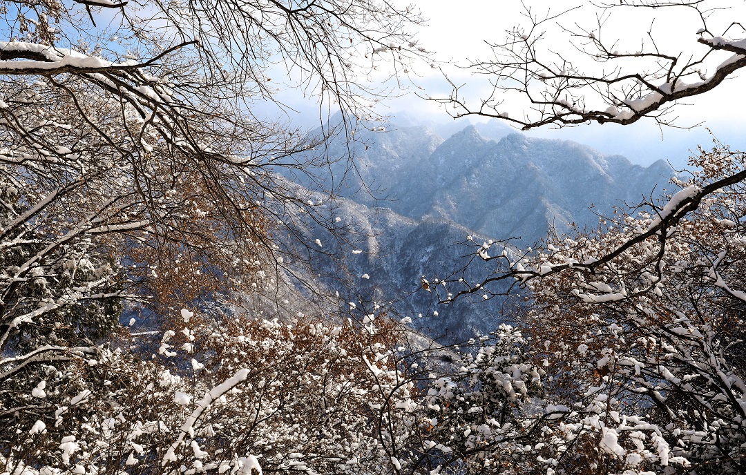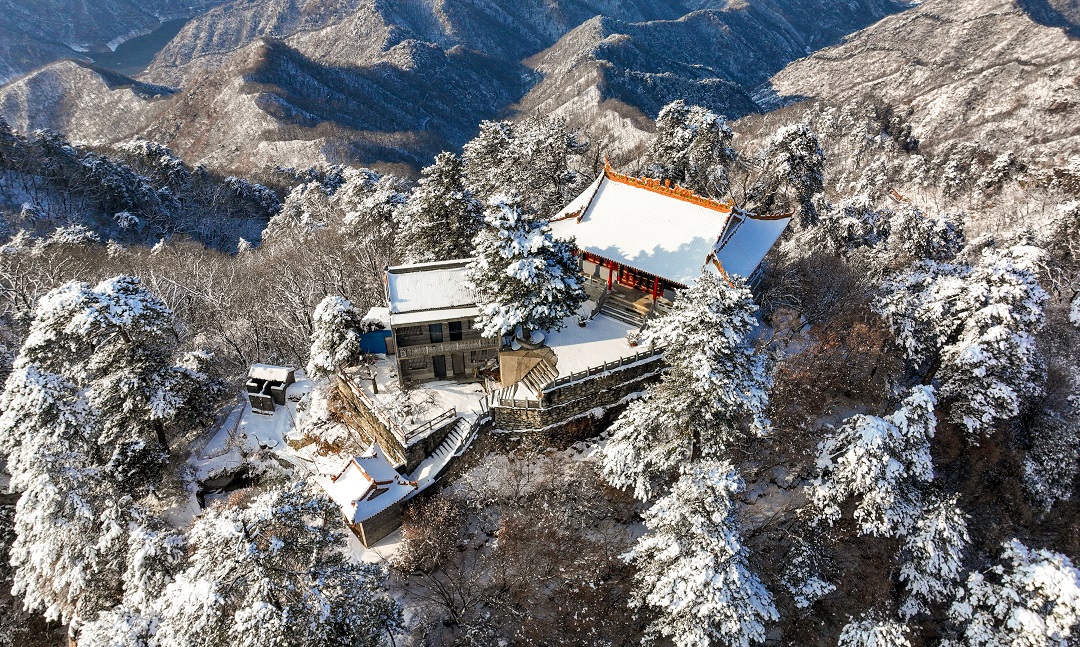 1月23日,秦嶺南五臺山上白雪皚皚、銀裝素裹,充滿詩情畫意,如同一幅水墨畫卷。