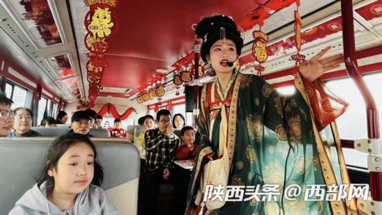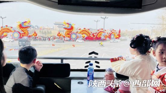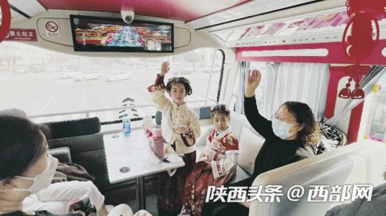 燈火暖長安,龍啟中國年。新春佳節,西安特推出龍年主題城市觀光車,車內張燈結彩,春節的氛圍感十足,市民乘坐觀光車即可一站式賞大唐風華,看西安街頭花燈璀璨。