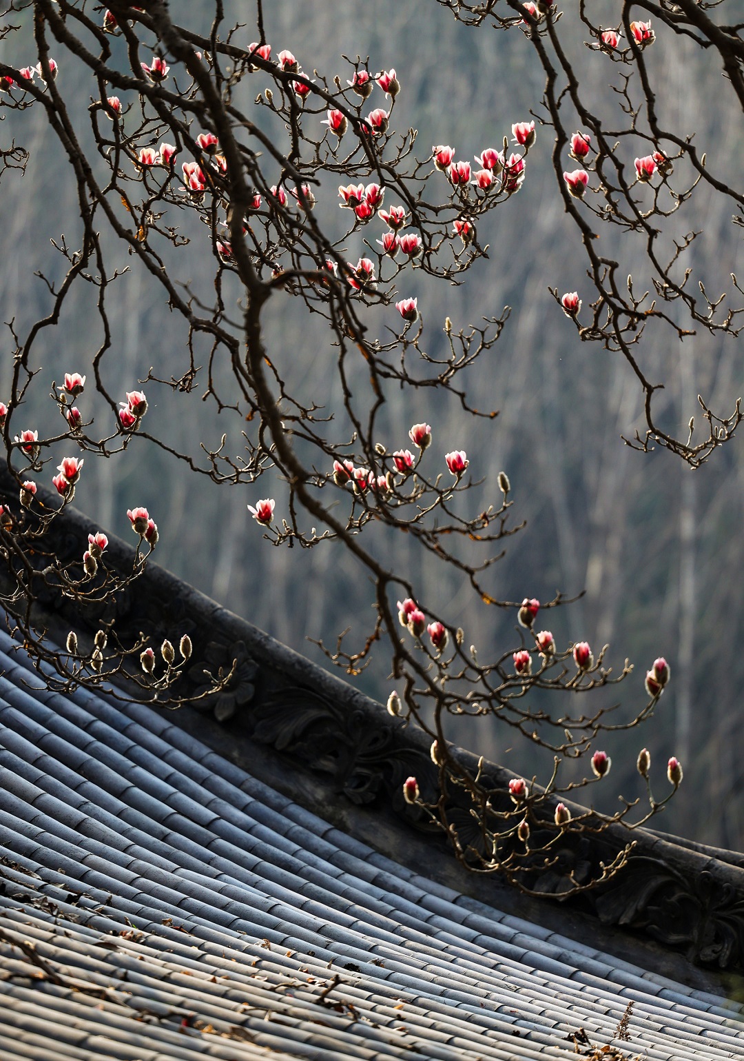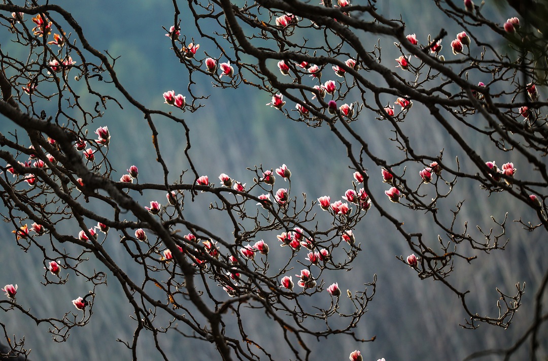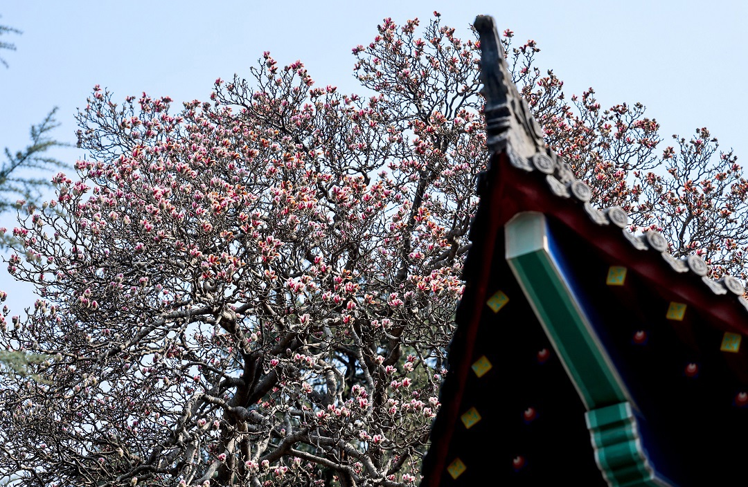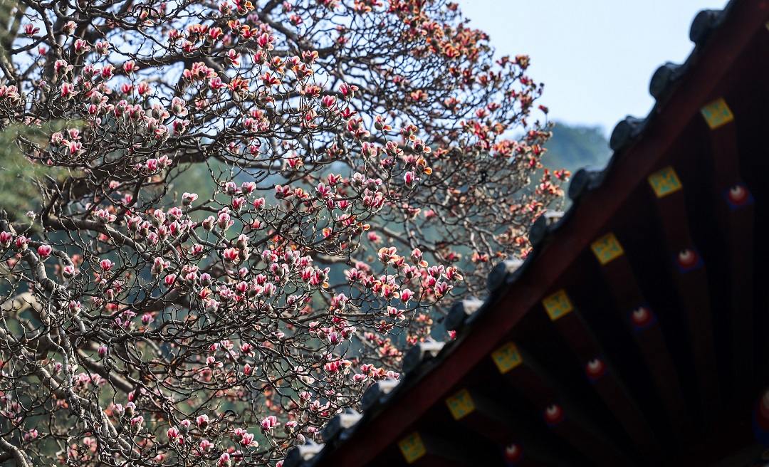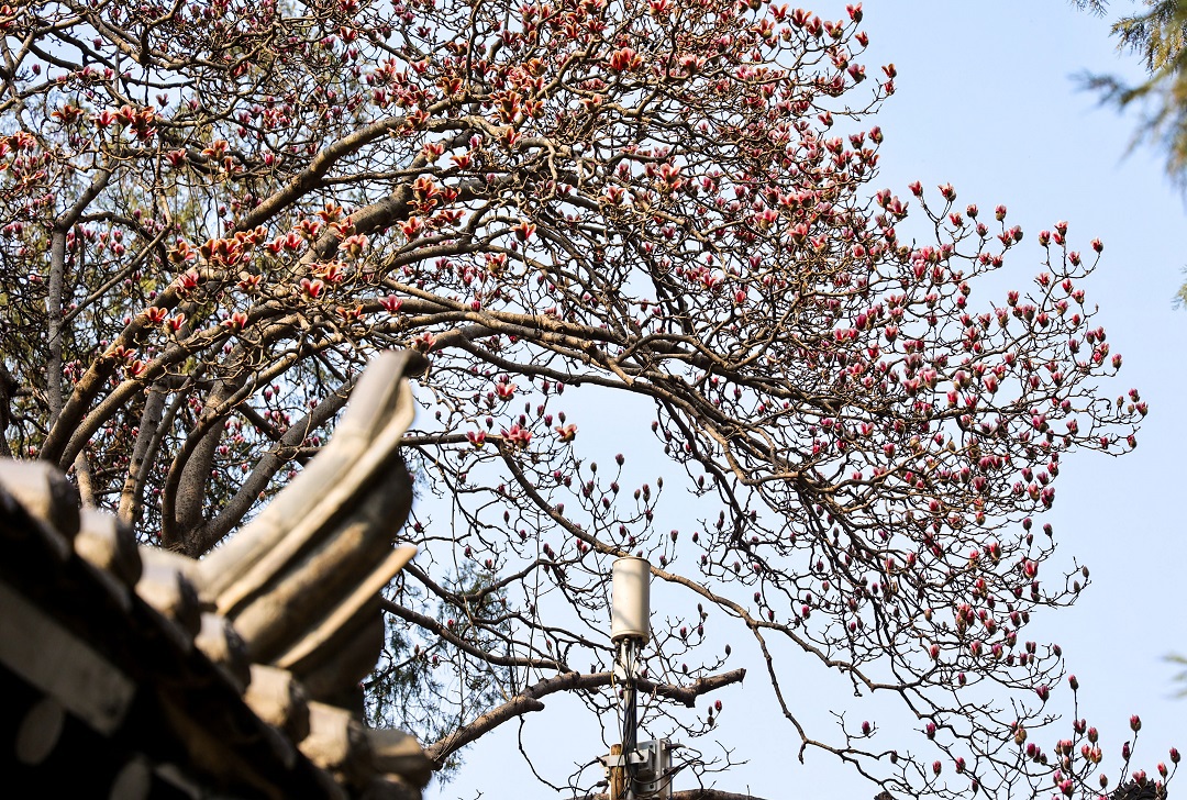 3月15日,位于秦嶺終南山下南五臺的兩株千年古玉蘭優雅綻放,粉色花朵綴滿枝頭,清香陣陣,沁人心脾,為古城西安的春天增添了一道亮麗的風景。
