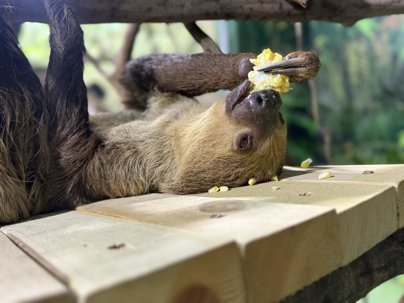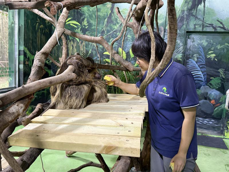 劉澤銳告訴記者,此次入駐的樹懶,正值5歲左右的“青年時期”,性格溫順又親人。它們會掛在精心布置的樹枝上打盹,偶爾慢悠悠地換個姿勢,一舉一動都萌得人心都化了。