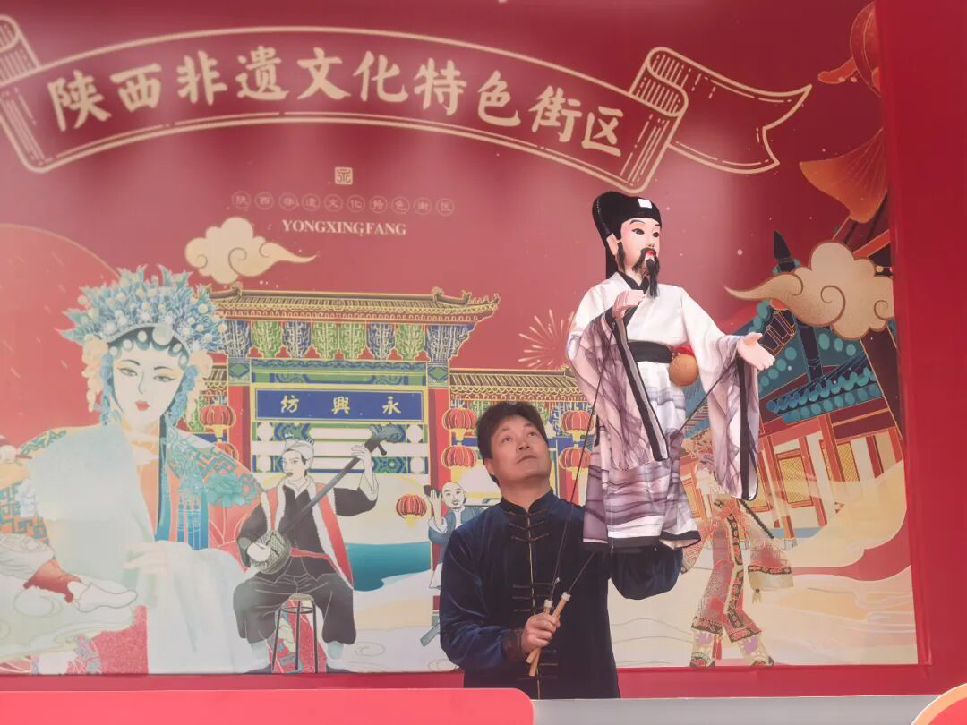 西安永興坊內,木偶“李白”與游客互動 秦毅 攝