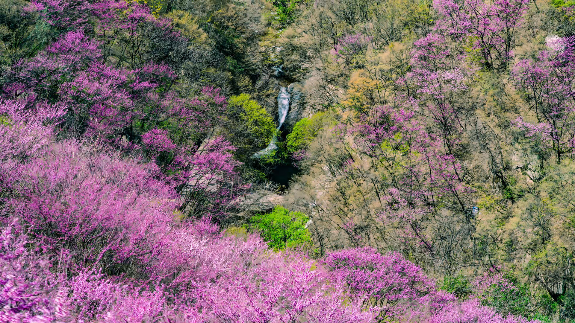 央廣網(wǎng)西安4月10日消息(記者侯凱奇)春回秦嶺,萬物競(jìng)發(fā)。近日,秦嶺北麓的陜西太平國(guó)家森林公園內(nèi),萬畝紫荊花沿山勢(shì)層疊綻放,燦若云霞,與山間飛瀑流泉交相輝映,繪就一幅生機(jī)盎然的春日畫卷,吸引八方游客紛至沓來。